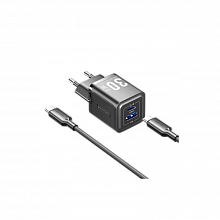 Набор для зарядки Vention TZ-FEQB0-EU-01 включает в себя компактное GaN зарядное устройство мощностью 30 Вт с двумя портами USB (USB-C и USB-A) и высококачественный USB-C кабель с поддержкой тока 3А