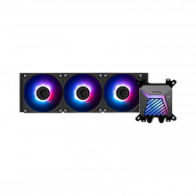 Система жидкостного охлаждения/ Water Cooling System MSI MAG CORELIQUID A15 360 (300W, 360mm, Black, ARGB/ Fans: 3x120mm, 64.89CFM, 28.7dBA, 2050RPM/ Pump 20dBA, 3400RPM, Rad thickness 27mm/ S: 1851, 1700, AM5, AM4)