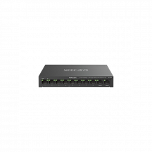 Коммутатор MERCUSYS MS110P — это неуправляемый настольный коммутатор с 10 портами Gigabit Ethernet, из которых 8 поддерживают технологию PoE+ (Power over Ethernet)
