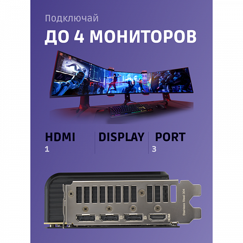 Видеокарта оснащена тремя вентиляторами, которые обеспечивают превосходный воздушный поток. Это позволяет эффективно охлаждать компоненты, поддерживая стабильную работу даже при высоких нагрузках.